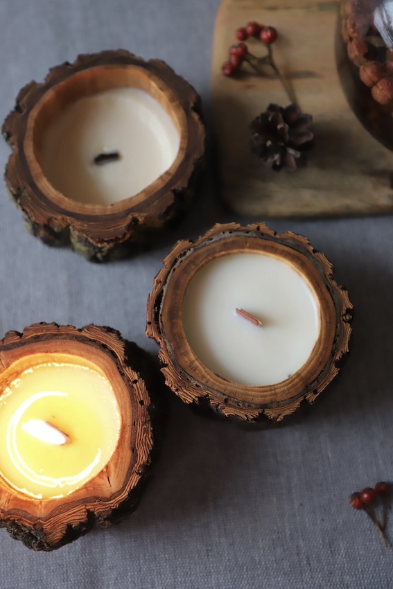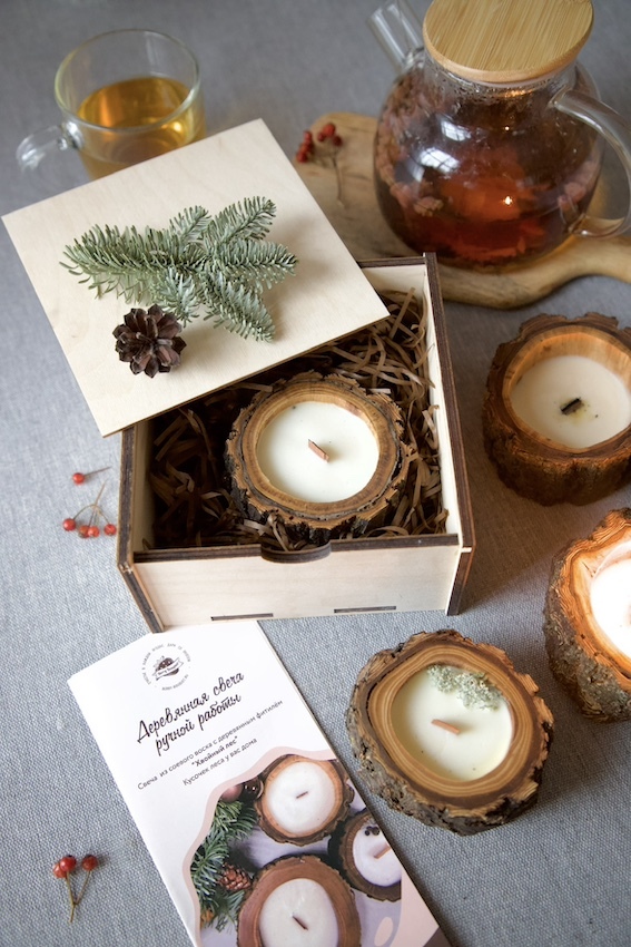 Свечи создаются из готового древесного сырья, который не подходит для изготовления стандартных деревянных изделий, ни одно дерево не пострадало от наших рук.