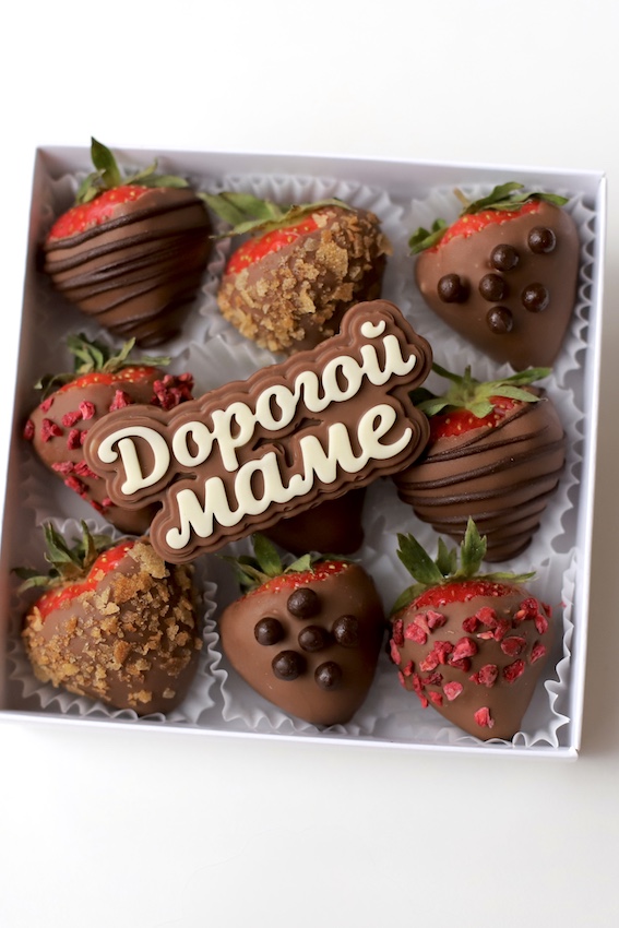 Восхитительный набор спелой клубники в бельгийском шоколаде Callebaut с надписью