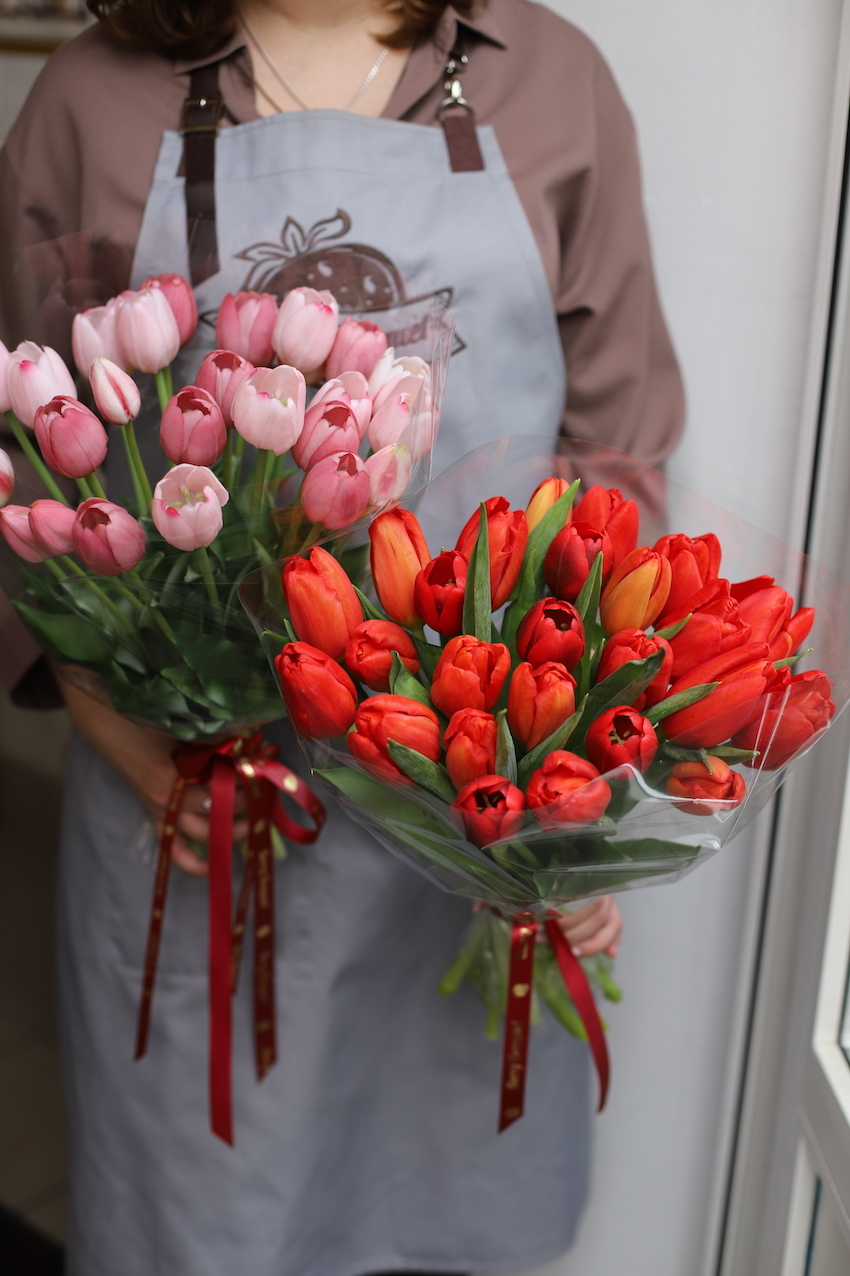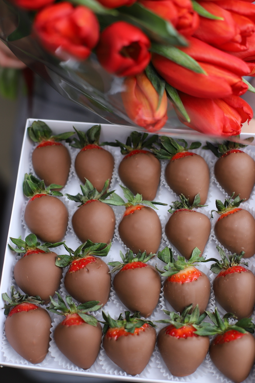 25 тюльпанов + набор клубники в шоколаде 20 шт.