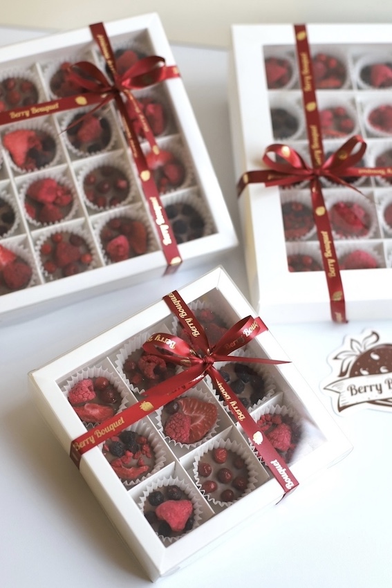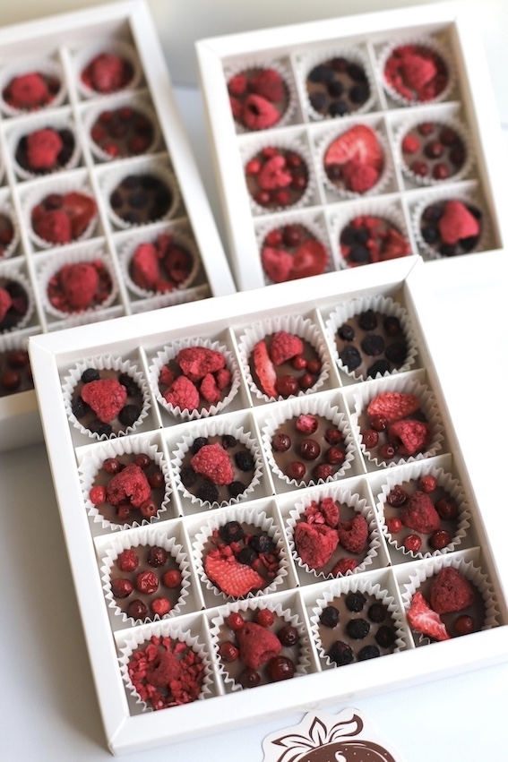 Состав: молочный шоколад без сахара, сублимированная клубника, сублимированная малина, сублимированная брусника, сублимированная черника.