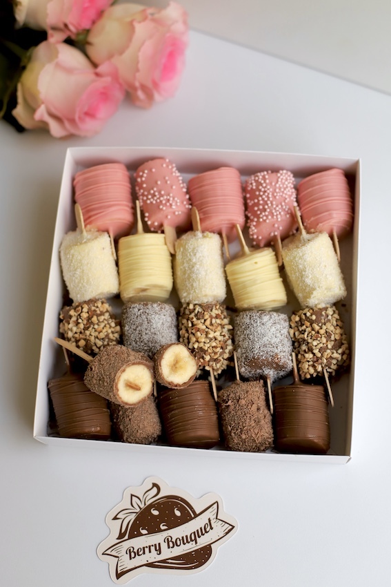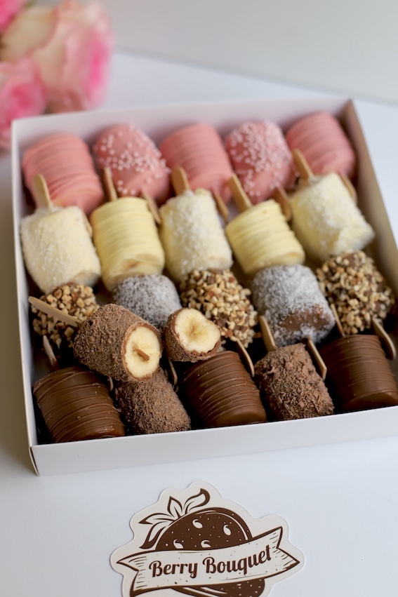 Хочешь попробовать нечто невероятно вкусное и оригинальное? Наш "Набор бананов в шоколаде" - это настоящий десерт для ценителей сладкого! Сочные бананы облитые молочным, белым и розовым шоколадом Callebaut, с добавлением дробленого миндаля и кокосовой стружки. Погрузись в мир удивительных вкусов с нашими лакомствами!