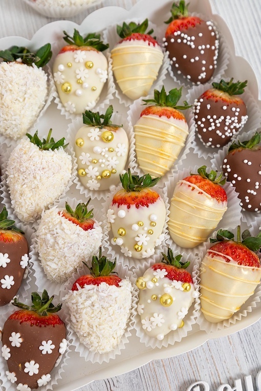 Невероятный набор зимней красоты! Наша свежая клубника покрыта бархатным слоем премиального белого и молочного шоколада Callebaut, украшена кондитерскими снежинками и кокосовой стружкой. Золотые шарики придают особый шик, а разноцветные посыпки добавляют радостных ноток. Этот уникальный десерт станет волшебным подарком для ваших близких и подарит ощущение праздника даже в самый холодный день. Порадуйте себя и своих любимых!