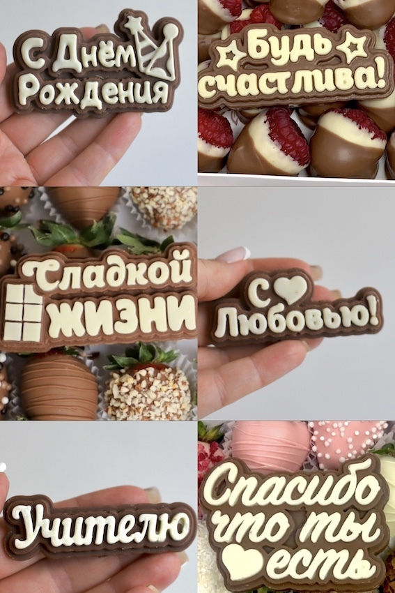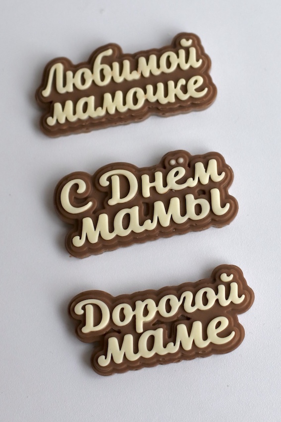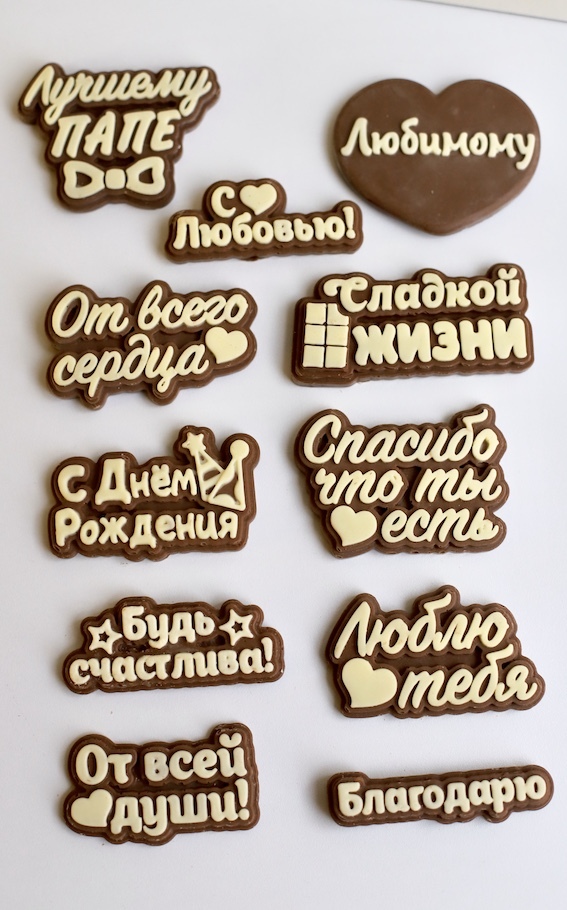 Шоколадная плитка молочная с надписью из белого шоколада.