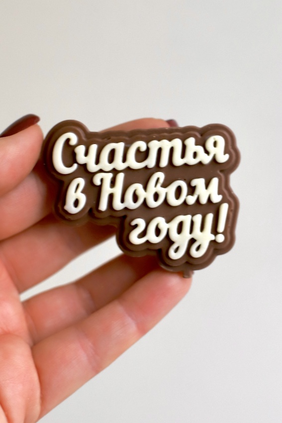 Шоколадная новогодняя надпись ручной работы из бельгийского шоколада Callebaut