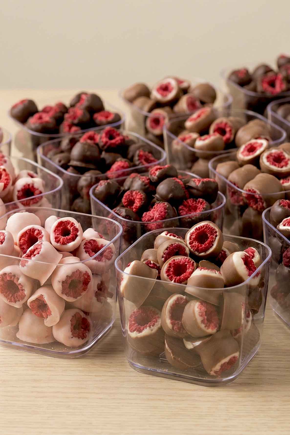Сублимированная малина в изысканном бельгийском шоколаде Callebaut! Молочный и белый, темный или клубничный шоколад на выбор.